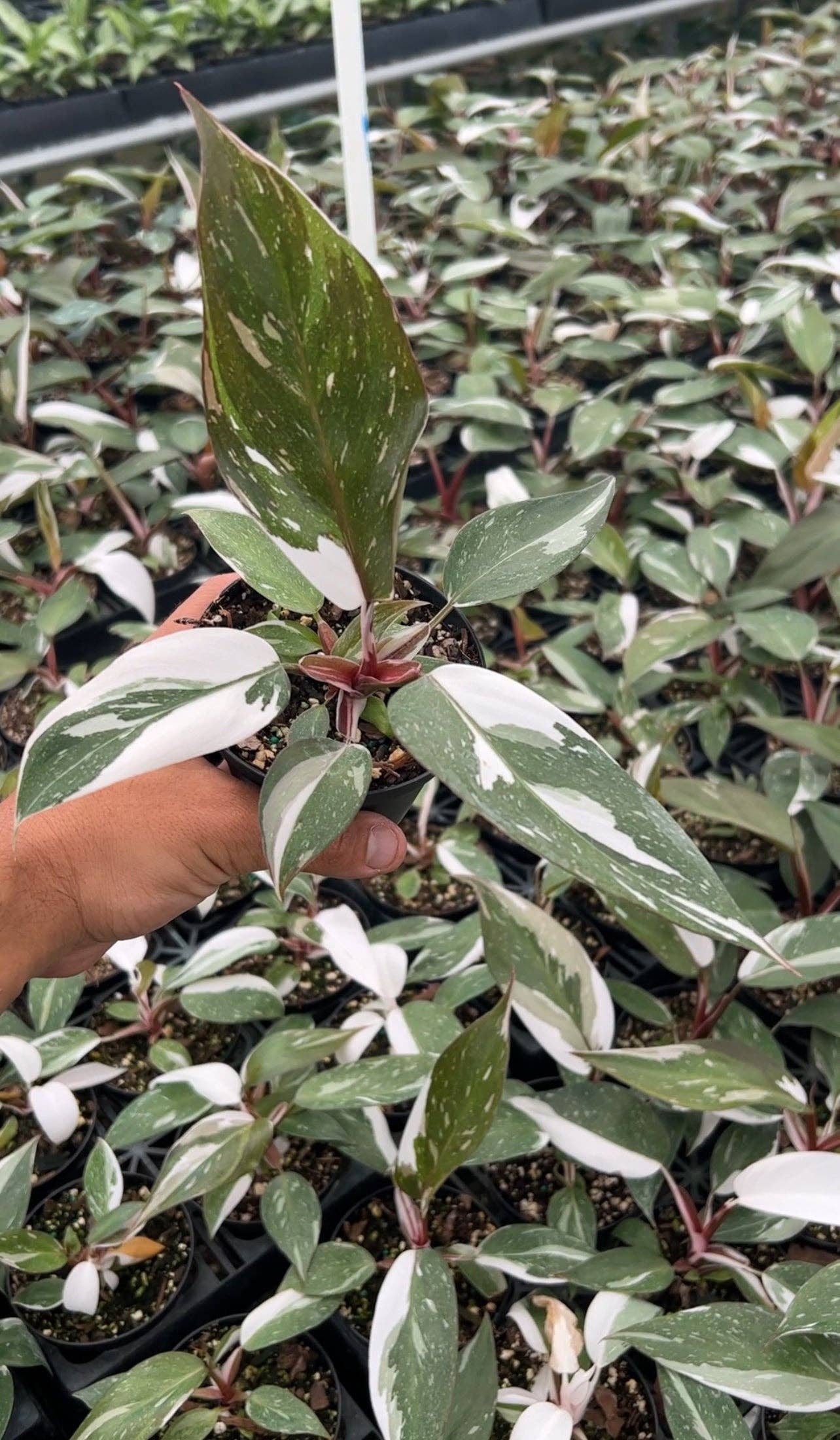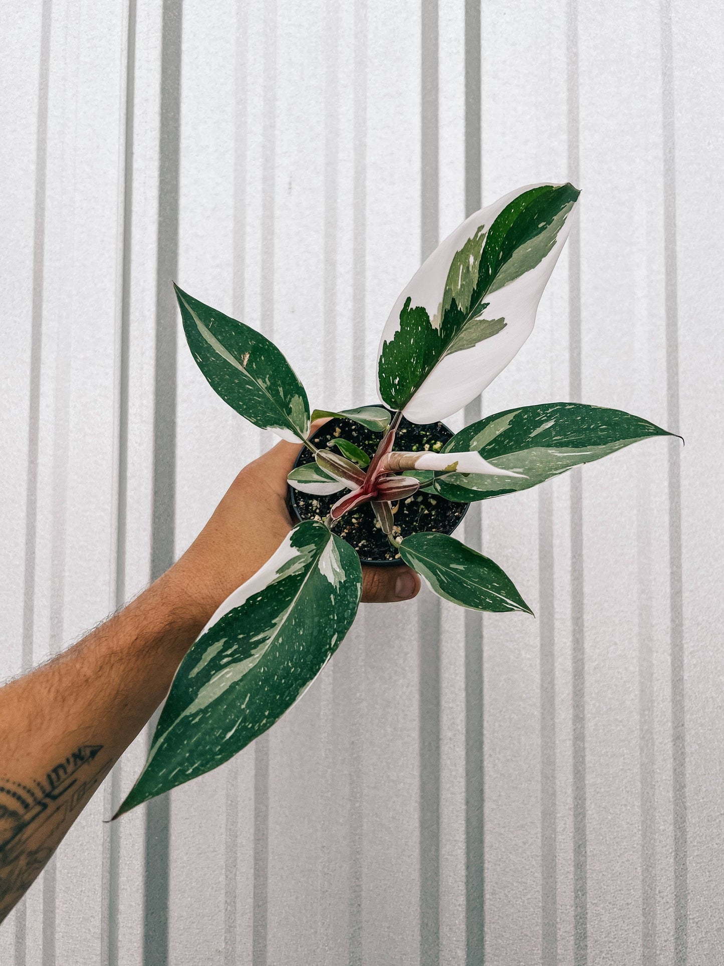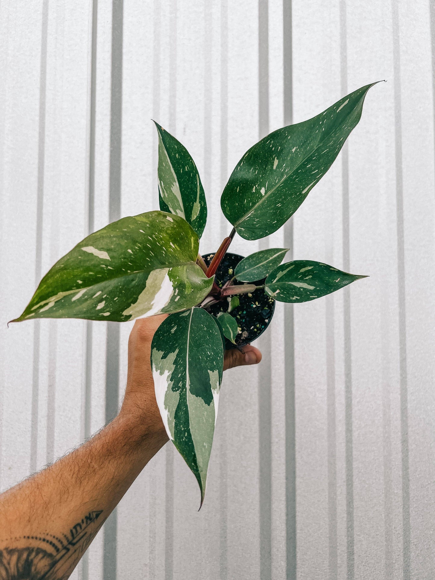 The Philodendron 'Pink Knight', also recognized as the Philodendron 'Red Anderson' is a philodendron hybrid that combines the stunning features of the 'Pink Princess' and 'White Knight'. This striking philodendron stands out with glossy pink foliage, deep red stems, and new leaves featuring white variegation.