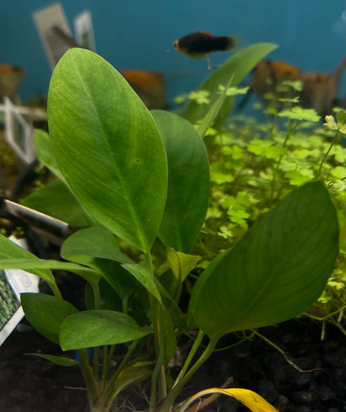 The plant that’s impossible to kill! Anubias is a very hardy plant that can grow almost anywhere and prefers water temperatures of 72-82 degrees. With being able to grow submerged and emersed it is the perfect plant for your planted aquarium. You can put this plant on a log or rock and it will attach its self using its roots. This plant does like being close to moving water so using it as a background/mid ground plant is great.