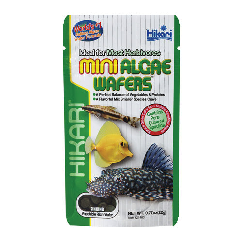 Hikari's Mini Algae Wafers are a scientific diet for Plecostomus and other algae eating fishes, including marine herbivores. They provide a balance of premium-select ingredients developed to promote proper growth and desirable form in most herbivorous species. They contain higher levels of vegetable matter and multiple algaes that plecostomus and other algae eaters prefer. The uniquely shaped discs sink rapidly and retain their shape, allowing less aggressive species ready access to their nutrition. With pure-cultured spirulina and chlorella algae to help your underwater friends look their best!