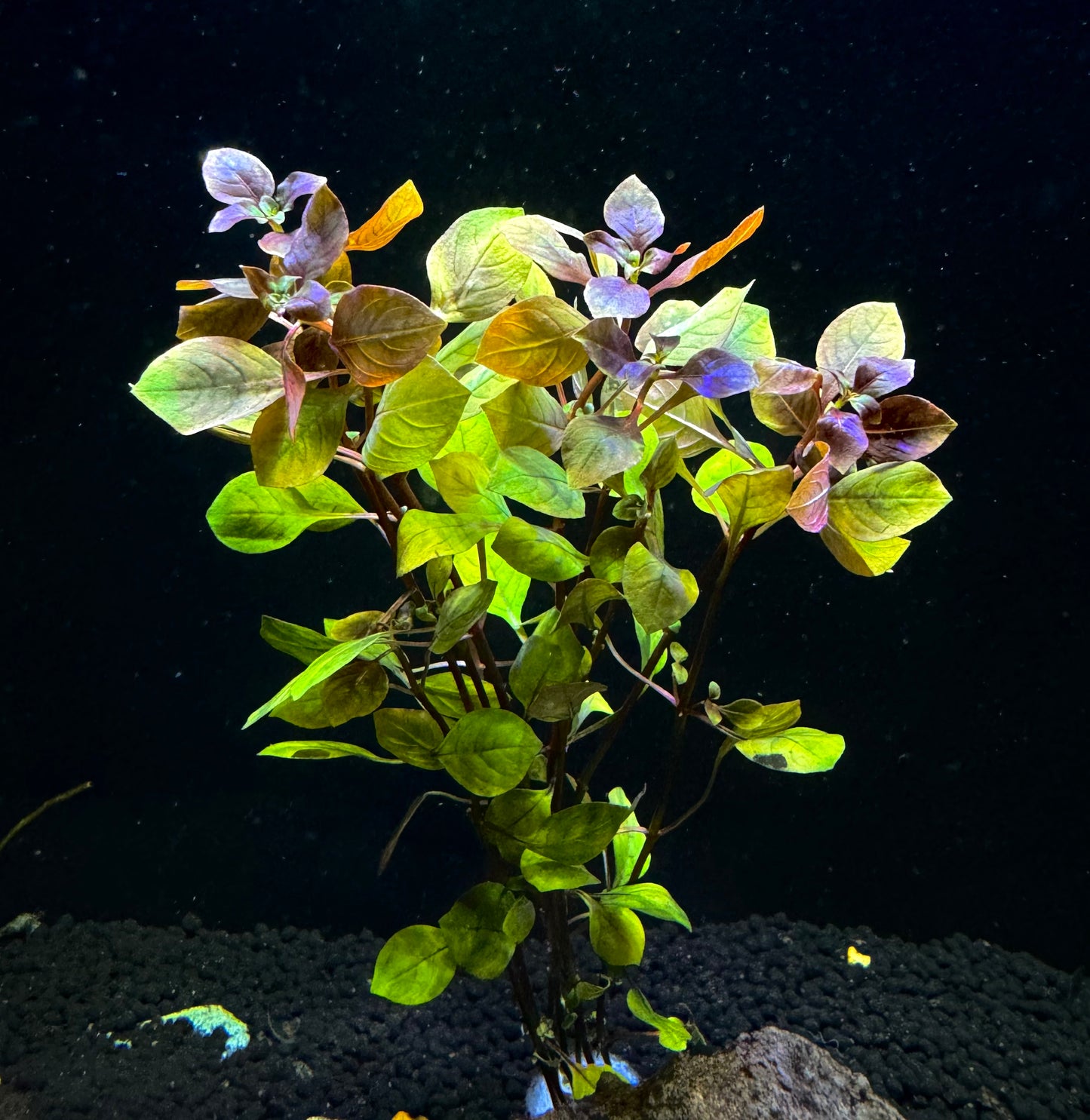 Ludwigia Palustris 'Super Red' is a vibrant stem plant prized by aquascapers for its striking crimson foliage under high-light conditions. This versatile species thrives in moderate to high-light environments where it develops its most intense coloration. With proper fertilization and CO2 supplementation, it grows rapidly and responds well to pruning, making it ideal for creating dynamic aquascaping compositions. Hardy and adaptable, it suits both beginner and advanced aquarists seeking reliable color contrast in planted tanks.