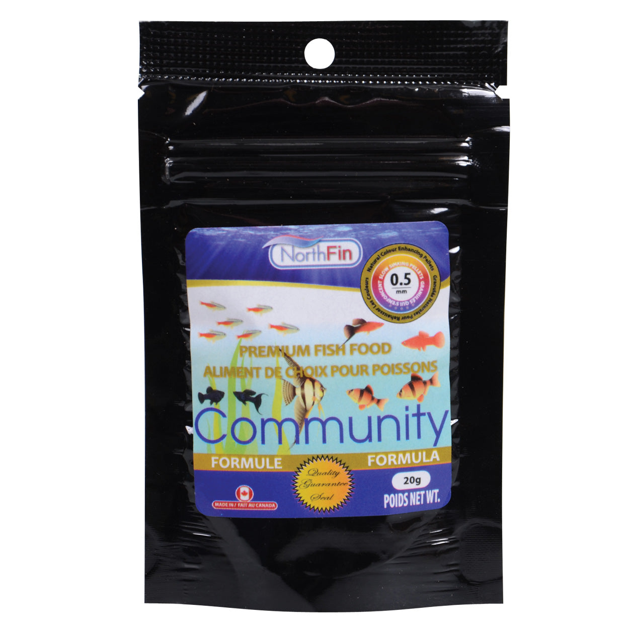 NorthFin Community Formula is professionally developed to improve the health and well-being of a diverse freshwater community, while naturally enhancing the brilliant colors of its individual members. It offers a broad spectrum of nutrients to satisfy the dietary requirements of most freshwater species. Made exclusively with premium quality ingredients, this balanced and nutritious daily diet is completely free of fillers, hormones, and artificial pigments. Easily digestible, slow-sinking 0.5 mm pellets are sized for a variety of different fish. They promote optimal nutrient absorption and help reduce the amount of waste in your aquarium. Proudly made in Canada. All NorthFin premium fish foods are made with the following key ingredients: