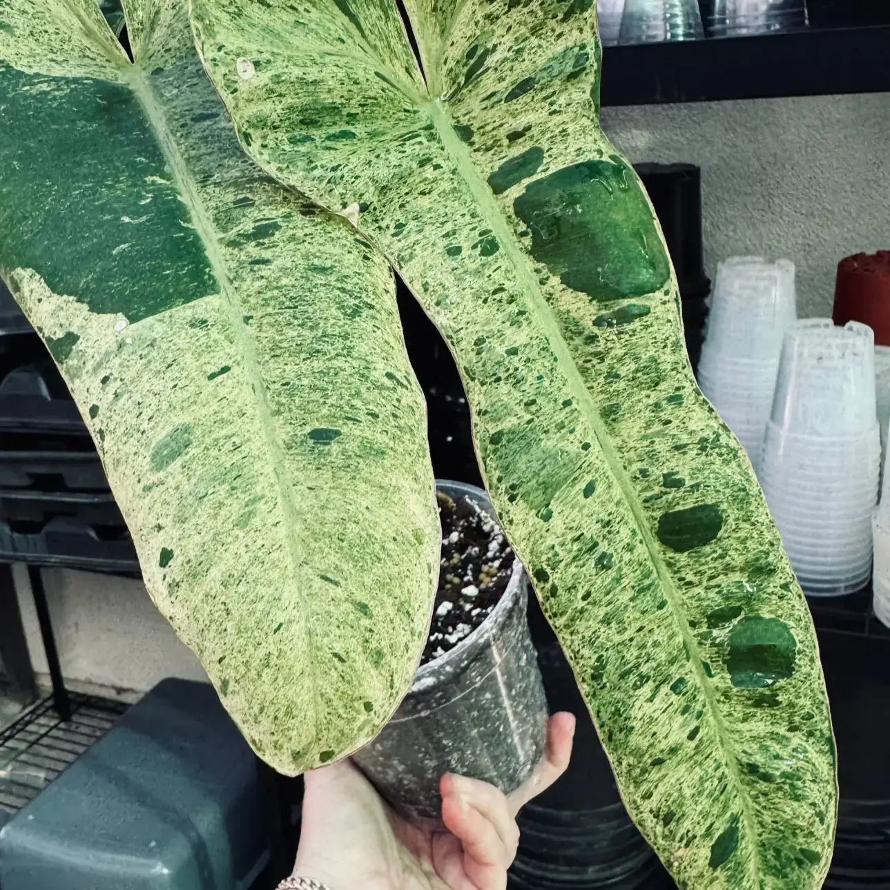 The Philodendron Paraiso Verde is for sale at Plant Vault, a rare tropical plant prized for its striking variegated leaves. This rare houseplant features large, glossy, heart-shaped leaves with a beautiful blend of deep green and creamy yellow or light green variegation. The variegation is often irregular, with bold streaks and patches of pale color that contrast beautifully against the dark green, creating a dynamic and sophisticated look. Native to the tropical rainforests of South America, the Philodendron Paraiso Verde thrives in shaded, humid environments, making it a perfect fit for indoor collections. Its rarity ensures it is not commonly found in nurseries, adding to its desirability among plant collectors.