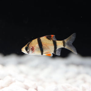 Nothing completes a community fish tank like Tiger Barbs do! They are a schooling fish species which means they should be kept in groups of 3 or more. Tiger Barbs do best in a 20 gallon tank or larger. They grow to be about 2-3 inches long. High quality flakes, pellets, and frozen foods are a great for Barbs.