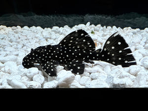 Garlic, wooden stakes and holy water won’t save you from the captivating looks of the Vampire Pleco L240!! This Pleco is found in the Orinoco River System in South America and is popular for its dark black body and contrasting white spots! This Pleco grows to almost 10 inches long and feeds on a diet consisting of meaty, protein rich foods like worms, shrimp, clams, etc.