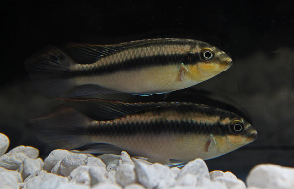 This pretty little fish is a Yellow Kribensis. They grow to be about 4” long. They are known to be aggressive and should be kept with other cichlids about their size. Kribensis are omnivores and will do good on a high quality omnivorous flake or pellet. To give them variation in their diet, they can be given frozen foods such as bloodworms, krill and tubifex worms.